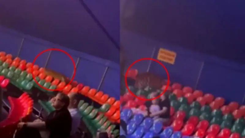 En el caos resultante, uno de los tigres saltó en dirección a las gradas, donde decenas de espectadores observaban la función. Las imágenes muestran claramente al animal suelto entre el público, generando inmediato pánico y la evacuación precipitada de algunas personas del recinto.