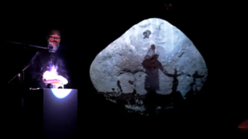 Durante la presentación, Miguel Gélvez toma una piedra caliente y con agua dibuja imágenes que desaparecen casi instantáneamente, en una acción que enfatiza la fragilidad del recuerdo y el inexorable paso del tiempo. Mientras se trazan estas "grafías" sobre la piedra, la intervención sonora acompaña relatos de personas que han perdido a seres queridos en el conflicto armado colombiano, evocando memorias que, al igual que los dibujos acuáticos, se desvanecen gradualmente.