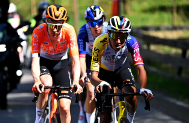 Allí apareció Egan Bernal, quien intentó en varias ocasiones reducir diferencias con el líder Giulio Pellizzari. El colombiano logró descontar tiempo gracias a un sprint bonificable, recortando dos segundos que lo dejan a solo cuatro del primer lugar.