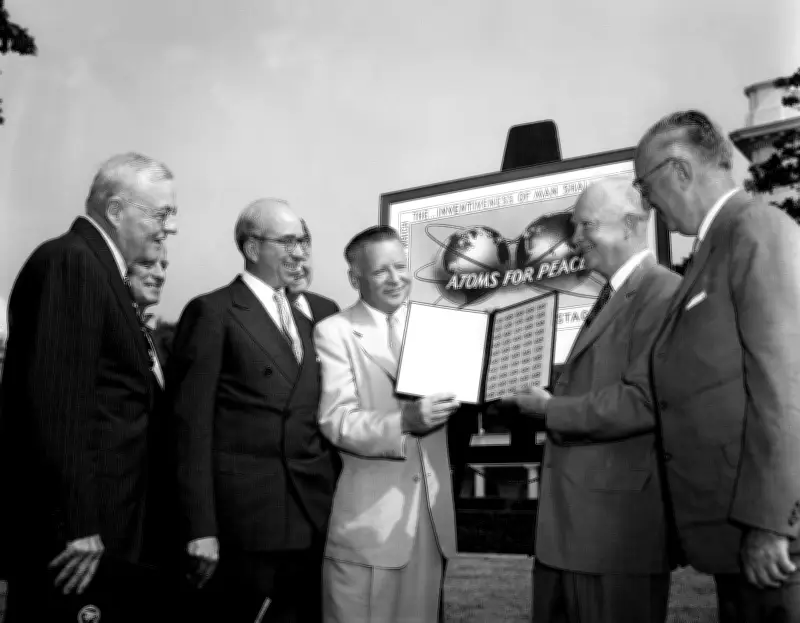 En un esfuerzo por redirigir la atención pública del ámbito militar y abordar la amenaza de la guerra nuclear desde una perspectiva diferente, el presidente Dwight D. Eisenhower lanzó la iniciativa "Átomos para la paz" en 1953. En su discurso ante la Asamblea General de las Naciones Unidas el 8 de diciembre de ese año, declaró: "Estados Unidos se compromete ante ustedes —y, por lo tanto, ante el mundo— a ayudar a resolver el terrible dilema atómico, dedicando todo su corazón y su mente a encontrar la manera de que la milagrosa inventiva del hombre no se dedique a su muerte, sino que se consagre a su vida."