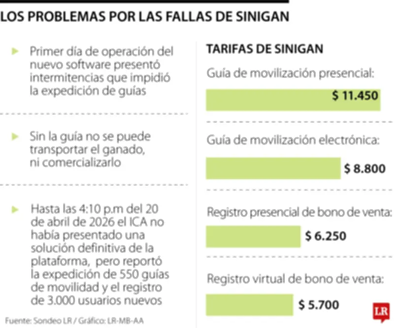 El Instituto Colombiano Agropecuario (ICA) implementó este martes 21 de abril de 2026 la versión seis de su plataforma Sinigan, pero lo que prometía ser una modernización tecnológica se convirtió en un verdadero caos operativo que afectó gravemente al sector ganadero nacional. Las fallas del sistema impidieron la movilización de al menos 2.000 cabezas de ganado durante un día crítico para las subastas, generando pérdidas preliminares estimadas en $10.000 millones.