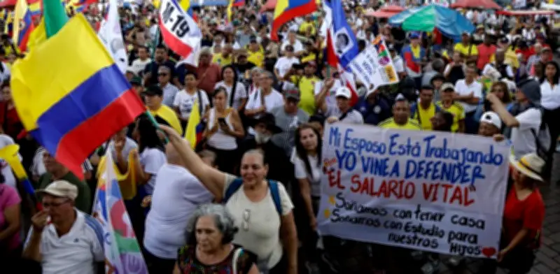 Las protestas registradas este jueves congregaron a numerosos manifestantes que mostraron carteles y pancartas exigiendo la implementación completa del aumento salarial. Según testigos presenciales, los participantes expresaron su respaldo a la medida gubernamental que busca mejorar el poder adquisitivo de los trabajadores colombianos en un contexto de ajustes económicos.