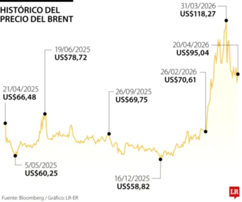 Los futuros del crudo Brent registraron un aumento de US$5,08, equivalente a un 5,62%, alcanzando así los US$95,46 por barril. Por su parte, el West Texas Intermediate estadounidense también mostró un comportamiento alcista, situándose en US$88,86 el barril con un incremento de US$5,01, lo que representa un 5,97% de subida.