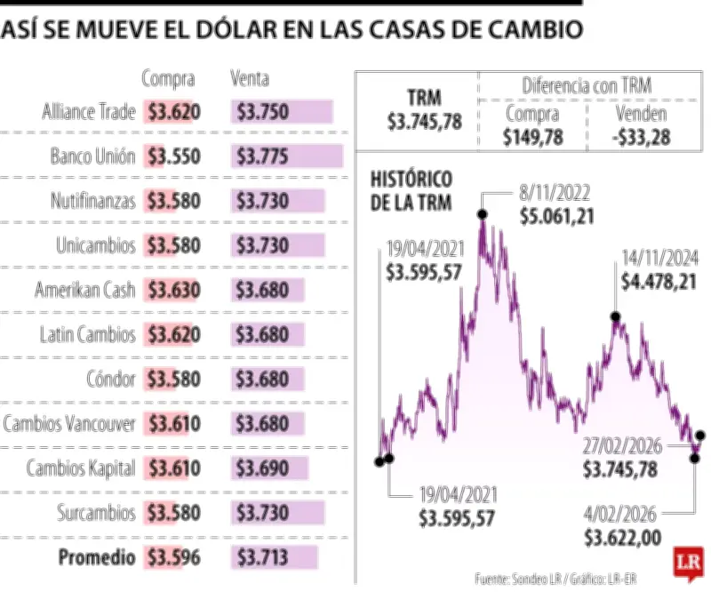 En medio de una marcada volatilidad cambiaria que ha llevado al dólar a niveles no registrados desde principios de enero, las casas de cambio colombianas presentan una oportunidad significativa para quienes realizan operaciones con divisas. Mientras la Tasa Representativa del Mercado (TRM) se ubica en $3.745,78, estas entidades mantienen precios considerablemente más bajos tanto para la compra como para la venta de dólares en comparación con los bancos tradicionales.