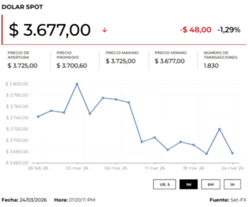 El dólar en Colombia abrió la jornada del miércoles 25 de marzo de 2026 con una marcada tendencia a la baja, situándose sobre los $3.677,50, lo que representa una disminución de $23,17 frente a la Tasa Representativa del Mercado (TRM) que para hoy se ubicó en 3.700,67. Durante la sesión, la divisa estadounidense registró un mínimo de $3.675 y un máximo de $3.680, con movimientos iniciales que sumaron US$500.000.