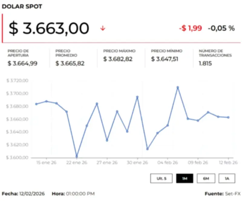 La divisa estadounidense cerró su sesión anterior en $3.671,33, lo que representó un incremento de $5,55 frente a la Tasa Representativa del Mercado (TRM) establecida en $3.665,78 para la jornada. Durante las primeras horas de negociación, alrededor de las 8:05 a.m., la moneda tocó un mínimo de $3.670 y un máximo de $3.672, registrándose tres transacciones iniciales.