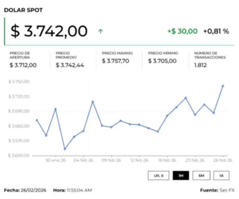La divisa norteamericana abrió la sesión en $3.764, lo que representa un incremento significativo de $18,22 frente a la Tasa Representativa del Mercado (TRM) que se ubicó en $3.745,78. Durante las primeras horas de negociación, la moneda registró un mínimo de $3.760 y un máximo de $3.769, volviendo así a niveles similares a los del inicio del año.