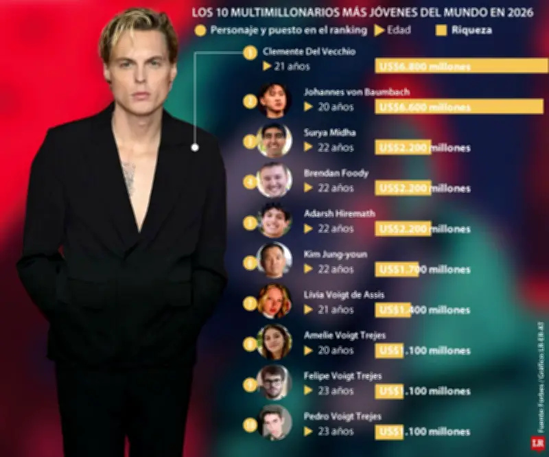 En la cima de esta lista se encuentra Clemente Del Vecchio, nacido en 2004, quien acumula cerca de US$6.800 millones gracias a su participación del 13% en la gigante óptica EssilorLuxottica. Esta riqueza fue heredada tras el fallecimiento de su padre, Leonardo Del Vecchio (1935-2022), fundador de la empresa. La mayoría de los integrantes de este selecto grupo poseen fortunas que provienen de herencias familiares, reflejando la continuidad de dinastías empresariales en la economía global.