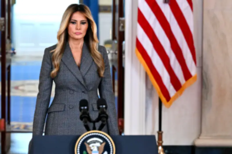 "Las mentiras que me vinculan con el vergonzoso Jeffrey Epstein deben terminar hoy", afirmó con determinación la esposa del presidente Donald Trump durante su comparecencia en el Salón de la Cruz de la Casa Blanca en Washington, D.C.