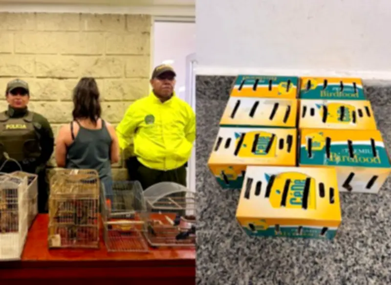 En una operación de control realizada en el Aeropuerto Internacional Rafael Núñez de Cartagena, la Policía Metropolitana logró la incautación de 18 aves silvestres que una pasajera de nacionalidad mexicana intentaba sacar ilegalmente del territorio colombiano. El procedimiento se desarrolló durante el cumplimiento de las funciones de vigilancia y control que ejercen las autoridades en los terminales aéreos.
