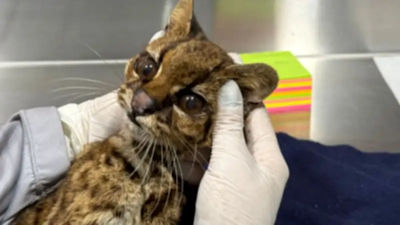 Rescatan a tigrillo lanudo en estado crítico de deshidratación en cerro de Medellín