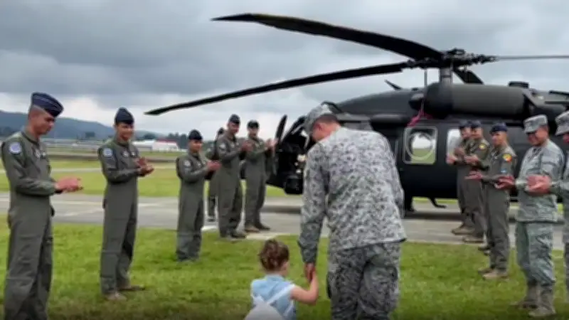 En un emotivo reencuentro que conmovió al Comando Aéreo de Combate Número Cinco de Rionegro, Antioquia, la pequeña Angelita, de tres años de edad, fue recibida con una calle de honor y aplausos por los mismos uniformados que presenciaron su nacimiento a bordo de un helicóptero militar durante una emergencia médica.