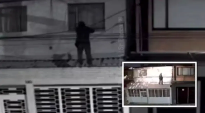 Las cámaras de vigilancia del sector registraron el momento exacto en que el individuo escaló hasta el segundo piso de una vivienda y procedió a manipular el sistema eléctrico. Al tocar los conductores energizados, recibió una descarga que generó chispas y detonaciones visibles, provocando alarma entre los residentes cercanos.