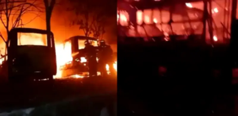 Videos compartidos en redes sociales muestran la magnitud del incendio, con las llamas envolviendo completamente los automotores mientras los bomberos trabajaban para sofocarlas.