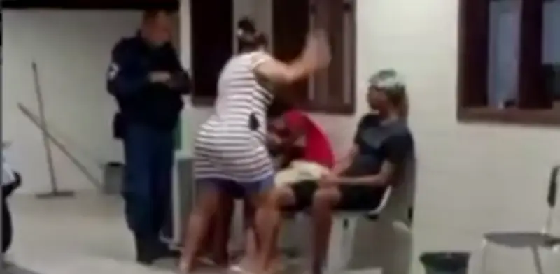 Madre golpea a su hijo con chancla en comisaría tras ser capturado por robo en Brasil