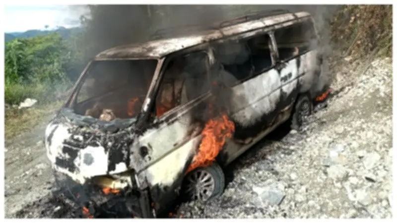 Los individuos, quienes vestían prendas similares a uniformes militares, intimidaron al personal técnico y, según versiones iniciales, les exigieron el pago de extorsiones para permitir la continuidad de los trabajos en la zona. Tras esta amenaza, los sujetos procedieron a incendiar los dos vehículos de la empresa, causando daños materiales considerables.