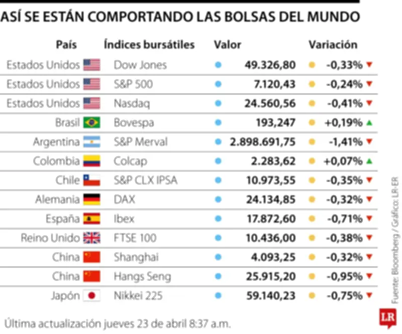 En Europa, las acciones cayeron un 0,1%, registrando su cuarta jornada consecutiva de pérdidas, la racha más larga desde enero. Como importador neto de petróleo y gas, la región sigue estando más expuesta a las fluctuaciones de Oriente Medio, y ni siquiera unos sólidos resultados empresariales han logrado mejorar el ánimo. El gigante de la belleza L'Oréal SA subió más de un 9% en París tras superar con creces las expectativas de ventas. Nestlé SA avanzó un 6% en Zúrich.