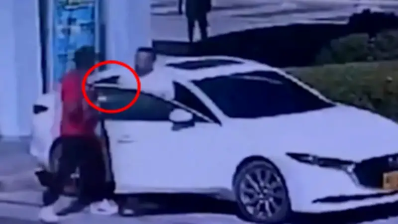 El robo ocurrió en un establecimiento ubicado dentro de un centro comercial en El Rodadero. Las imágenes de seguridad muestran al hombre saliendo del local cargando a su pequeña hija en brazos, para luego acercarse a su vehículo particular y colocar a la niña en la silla del carro. Mientras tanto, el delincuente ya se encontraba merodeando por el parqueadero, aparentando ser un cliente al caminar y hablar por celular, esperando el momento propicio para actuar.