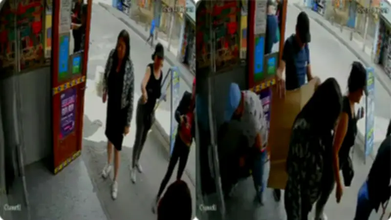 Mientras las tres mujeres rodeaban a la empleada y utilizaban sus cuerpos para bloquear la visibilidad hacia el interior del local, dos hombres aparecieron en la escena. Uno de ellos aprovechó el descuido y la barrera humana creada por sus cómplices para escabullirse dentro del negocio.