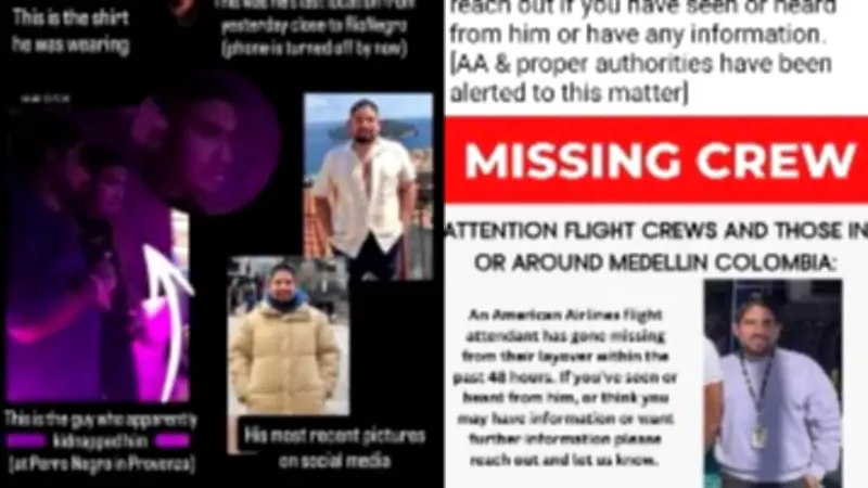 Por su parte, Alexandra Rivas, quien se identifica como compañera de trabajo, añadió en la misma plataforma: "Un compañero de trabajo, tripulante de cabina, Fernando Gutiérrez, está desaparecido en Medellín, Colombia desde hace más de 48 horas. Último dato: Estaba en su layover en Medellín y su último contacto fue en la madrugada. Dios lo proteja donde esté y lo traiga con bien".