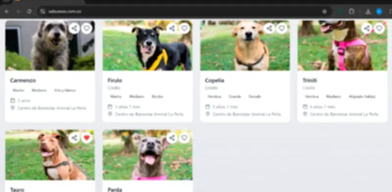 La plataforma incluye actualmente a más de 1.800 animales alojados en el Centro de Bienestar Animal La Perla, todos disponibles para adopción a través del sitio web www.sabuesos.com.co. Los interesados pueden consultar información detallada sobre cada animal antes de iniciar el proceso: