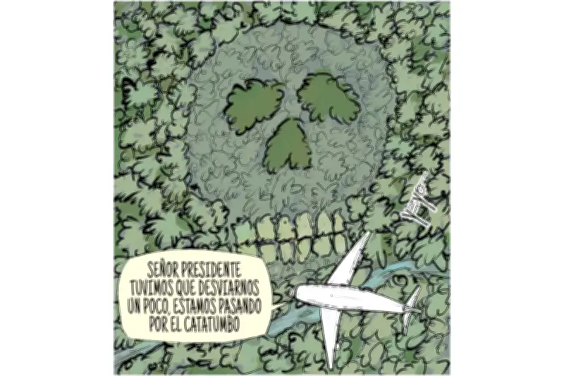 La caricatura utiliza elementos visuales para transmitir la fragilidad de la vida. Un personaje se encuentra al borde de un abismo, con un pie en la tierra firme y el otro suspendido en el vacío. Esta representación gráfica nos recuerda que la muerte puede llegar sin aviso, en cualquier momento y lugar.