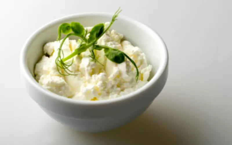 Queso ricota, hongos morillas, emulsión de parmesano