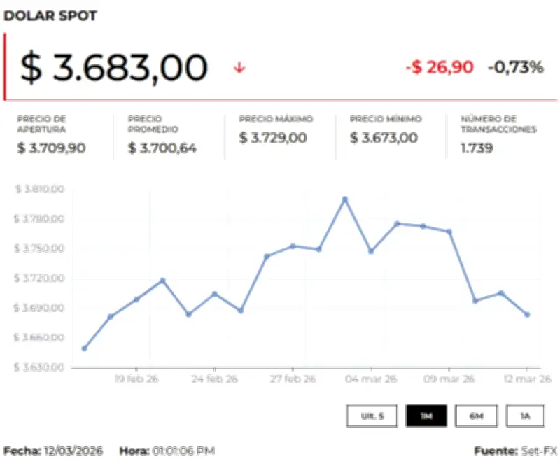 Hacia las 8:05 a.m. del viernes, el dólar registró un precio mínimo de $3.650 y un precio máximo de $3.683 con 47 transacciones realizadas, reflejando la incertidumbre que domina los mercados financieros internacionales en medio de esta crisis geopolítica.