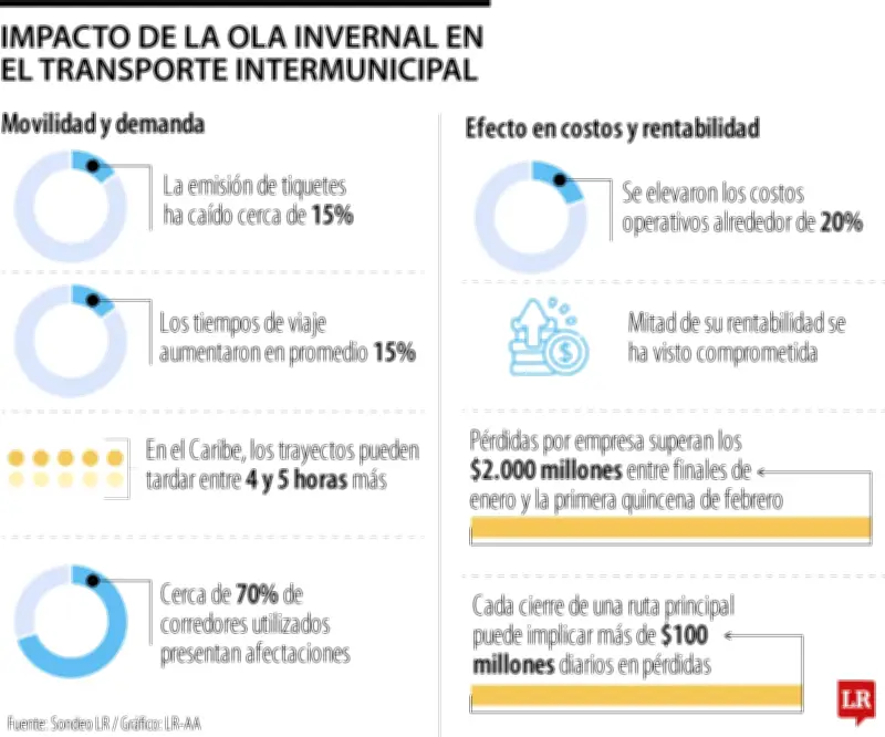 Con el inicio del periodo de Cuaresma, que tradicionalmente impulsa la movilidad previa a Semana Santa, el sector del transporte intermunicipal enfrenta un escenario particularmente complejo debido a la intensa ola invernal que afecta al país. Las persistentes lluvias, los cierres viales y los desvíos en corredores estratégicos han elevado significativamente los costos operativos de las principales empresas del sector justo cuando se esperaba uno de los picos de demanda más importantes del primer semestre.