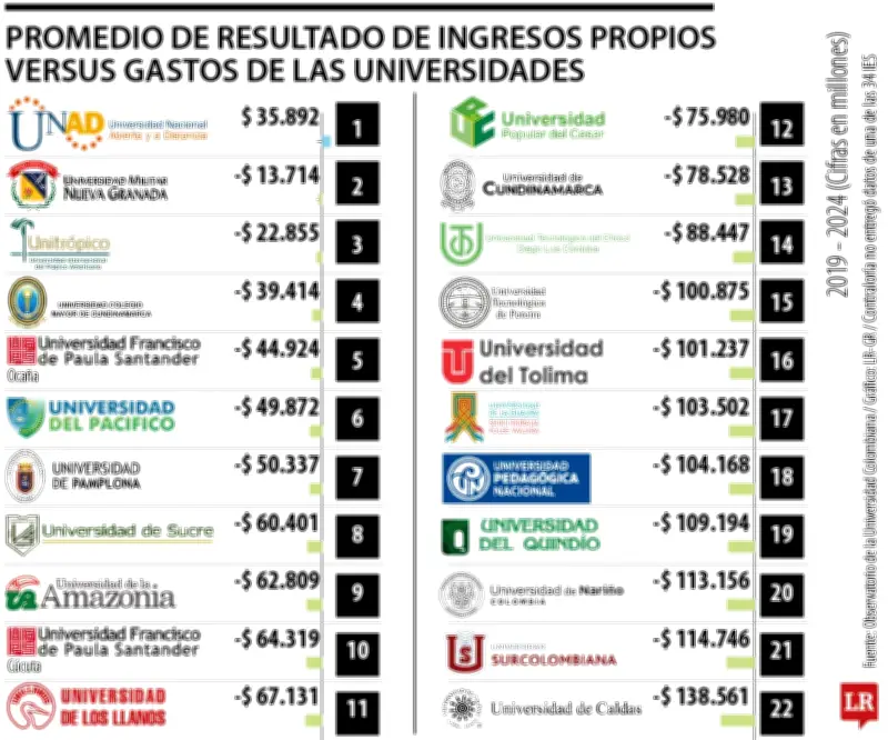 - Universidad Nacional de Colombia (Unal): $764.220 millones en saldo negativo