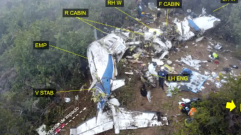 La última comunicación registrada ocurrió cuando la aeronave se encontraba a apenas 15 millas náuticas de su destino final. Minutos después, desapareció de los radares, desencadenando un operativo de búsqueda que culminaría con el hallazgo de los restos esparcidos en un área de 145 metros, evidenciando un impacto de alta energía a 6.881 pies de altura.