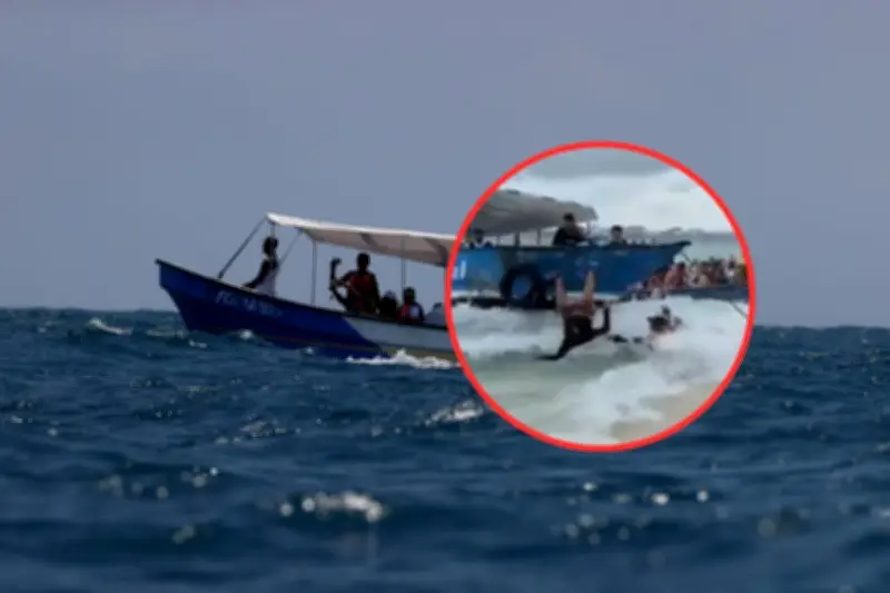 El incidente ocurrió cuando la turista intentaba descender de la embarcación que la transportaba hacia las playas de Johnny Cay. Testimonios difundidos en redes sociales indican que el fuerte oleaje combinado con la ausencia de condiciones adecuadas para el desembarque provocaron que la mujer perdiera completamente el equilibrio en el momento crítico de bajada.