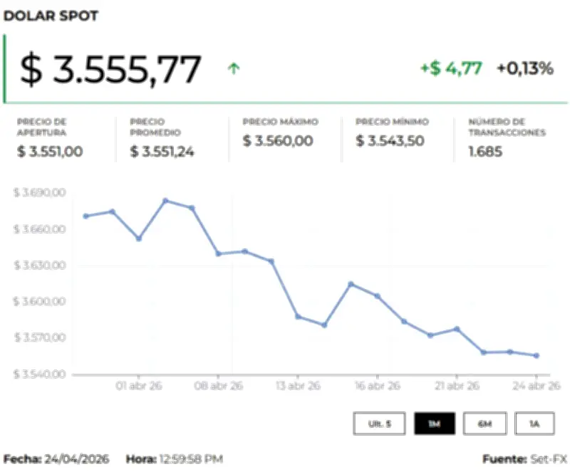 La divisa abrió con un mínimo de $3.550 y un máximo de $3.550, con 12 transacciones por un monto de US$6.000. Analistas señalan que esta tendencia alcista se enmarca en la estrategia del presidente de Estados Unidos, Donald Trump, para hacer más competitivo al país norteamericano frente a naciones como China. A pesar de la volatilidad, el dólar opera en niveles no vistos desde marzo de 2021.