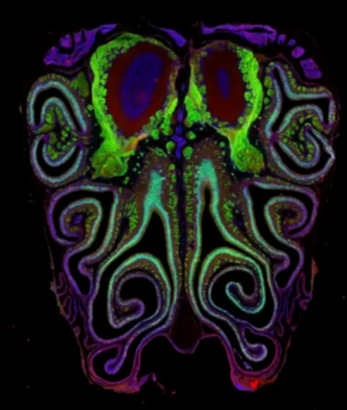 Según el estudio, el tejido olfativo funciona como un sistema que regula de manera coordinada la expresión de cientos de genes. En particular, alrededor de 250 genes siguen gradientes de actividad a lo largo del eje dorsal a ventral (de arriba hacia abajo en la cavidad nasal). Esto crea una especie de “mapa molecular” en el que cada zona tiene una identidad genética propia, guiada por señales como el ácido retinoico, que varía según la posición.