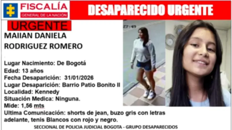 Un caso de desaparición que ha conmocionado a la comunidad se registró el pasado 31 de enero en el barrio Patio Bonito II, ubicado en la localidad de Kennedy, al suroccidente de Bogotá. La víctima es Maiian Daniela Rodríguez Romero, una niña de apenas 13 años cuyo paradero se desconoce desde esa fecha.